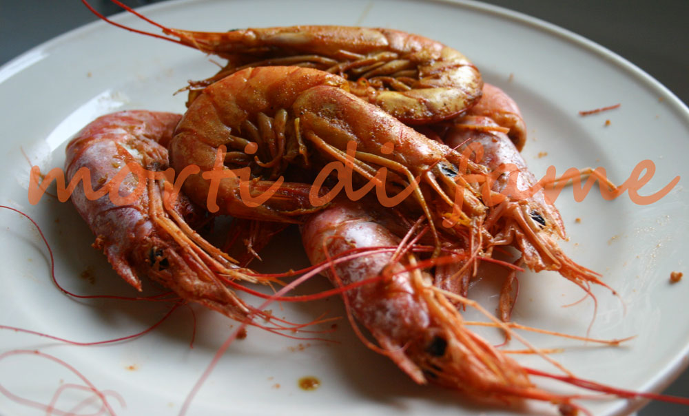 Mettere a marinare i gamberi nell'olio, aglio (tritato finemente), prezzemolo e una spruzzata di limone per due ore.