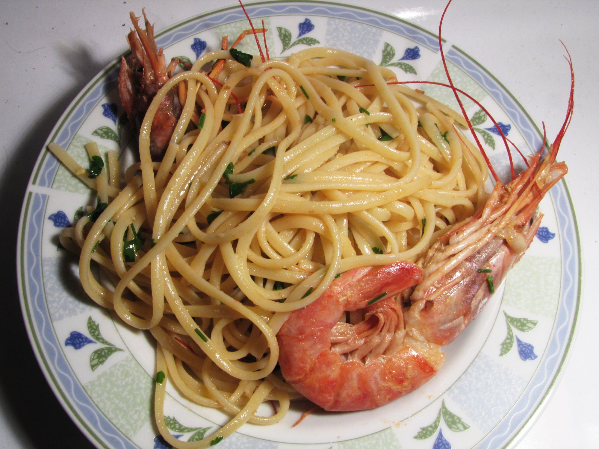 Pulire i gamberi, lavarli, asciugali e tagliarli in due nel senso della lunghezza. In un capiente tegame chiuso da un coperchio, fare insaporire 5 cucchiai di olio con lo spicchio di aglio per 2 minuti su fuoco medio( se si utilizza il microonde a potenza 650W). Non appena l’aglio ha preso colore, toglierlo e mettere a cottura i gamberi; salare, insaporire con il peperoncino e cuocere per altri 7/8 minuti su fiamma media o per 5 minuti a 500W nel microonde, rivoltando i crostacei a metà cottura. Scolare la pasta al dente e passarla nel tegame dei gamberi, condire con il succo di limone, la scorza grattugiata e una manciata di prezzemolo tritato. Mescolare bene in modo da insaporire uniformemente la pasta quindi servire ben caldo, decorando eventualmente con qualche scorzetta di limone tagliata a listarelle sottili.
