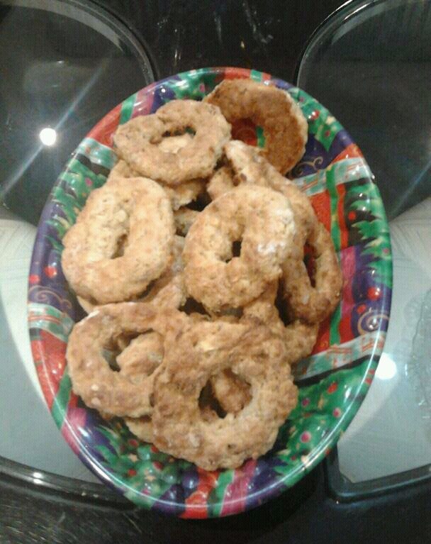 Una volta impastato creare con la pasta dei salsicciotti e poi unire le estremità, cosi da formare i roccocò. Riporli poi su carta a forno e far cuocere 25 minuti a 190°