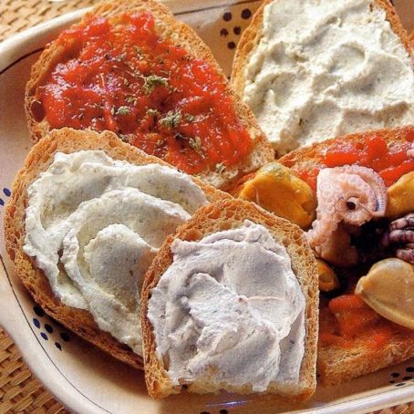 Tostate le fette di pane in forno, strofinatele con l'aglio e copritele prima con la ricotta e poi con il trito di pomodori e sedano. Cospargete di olio di oliva e origano.