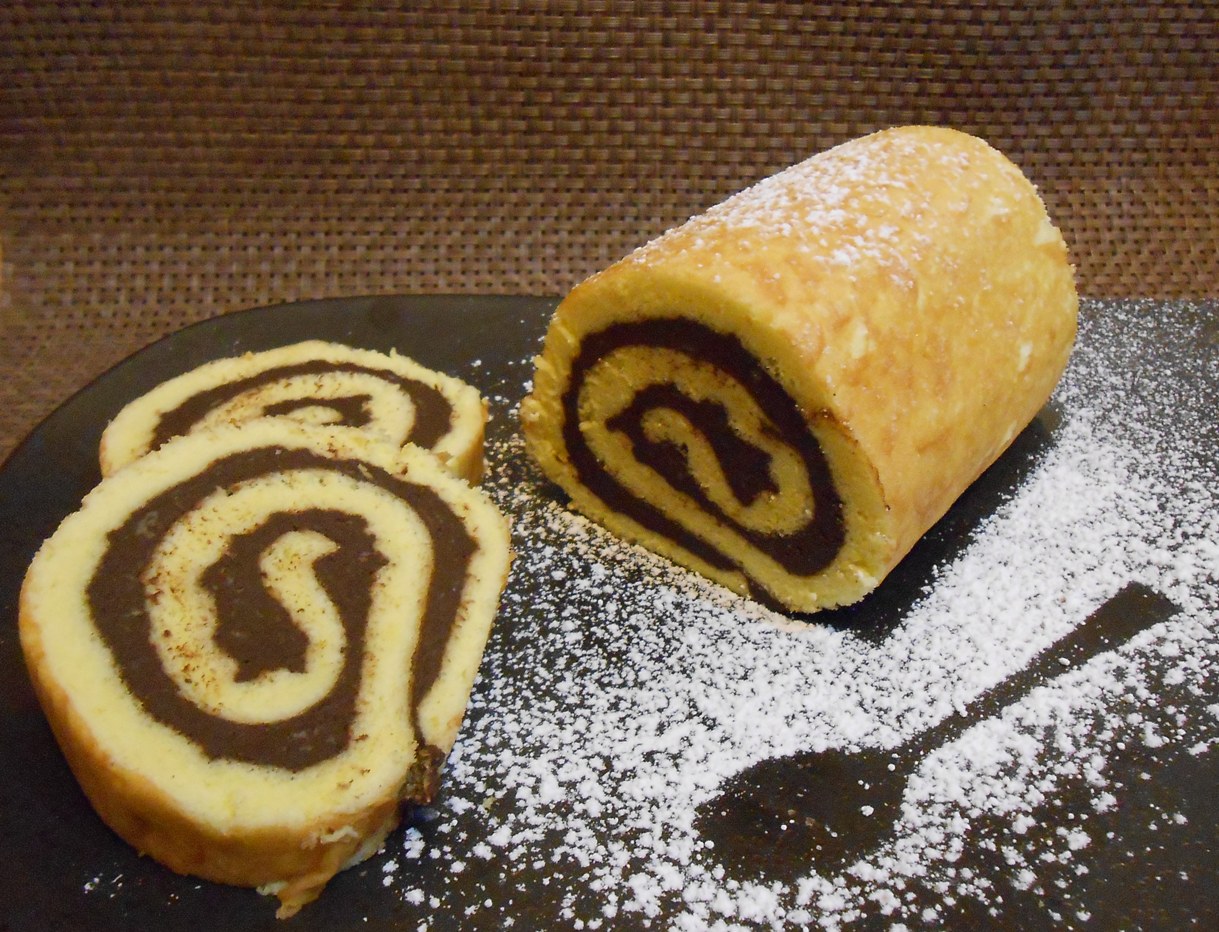 Stendere la pasta in una sfoglia rettangolare, spalmare la marmellata sulla superficie e arrotolare dal lato più lungo.