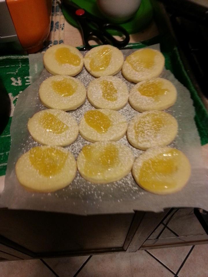 Dopo aver fatto raffreddare i biscotti, ricoprire la fossetta con la farcitura.