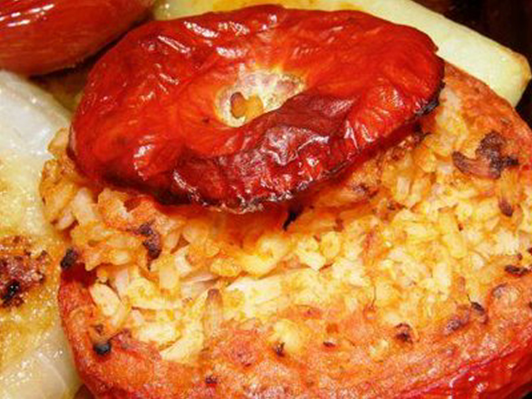 Tagliate la calotta ai pomodori e con un cucchiaino svuotateli di una parte della polpa e tenetela da parte. Salateli internamente. In una ciotola mescolate il riso con il prezzemolo, l’aglio tritato, sale e pepe, amalgamate il tutto con l’olio e la polpa di pomodoro passata al passaverdura.