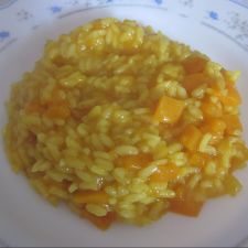 - 400 grammi di riso, una cipolla, salvia, un chilo di zucca, olio, burro, brodo di dado, pepe, formaggio grattugiato.