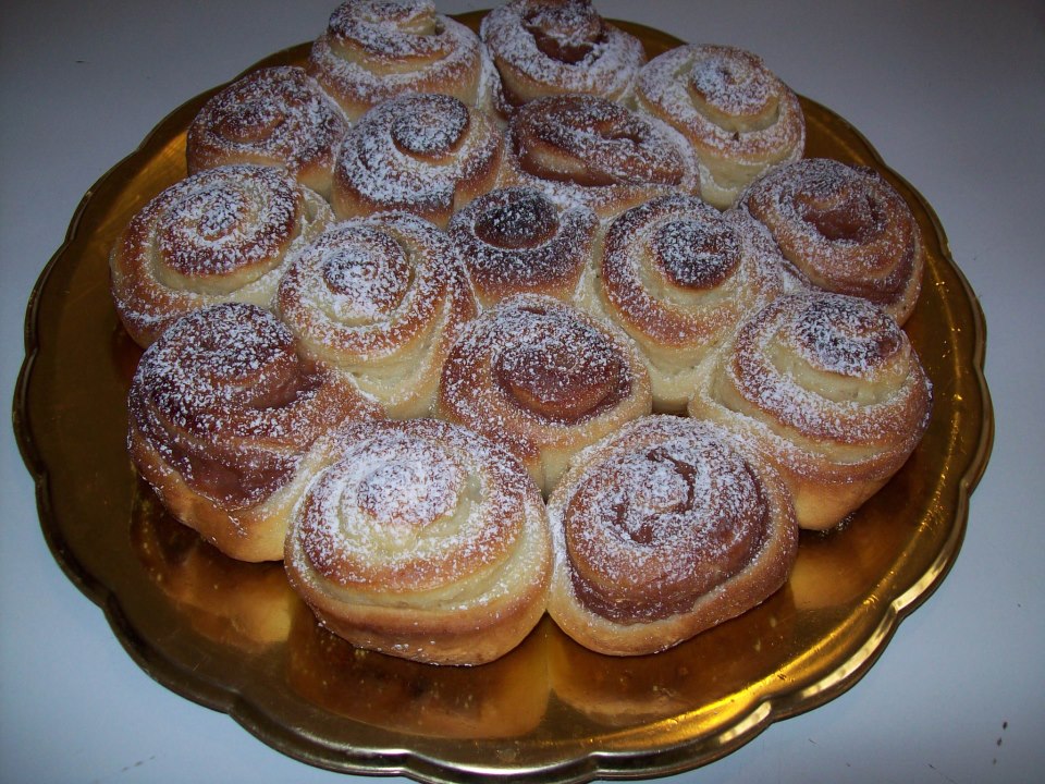 Trascorso il tempo,stendere l’impasto,infarinando il tavolo e formando un rettangolo di mezzo cm circa,spalmare la nutella su tutta la superficie,tranne i lati ed arrotolare il tutto partendo dal lato più lungo;una volta ottenuto un grosso cilindro tagliare a fette di circa 3-4 cm di spessore (tipo girelle) e collocarle nella tortiera ricoperta di carta forno,mettendo una rosa al centro e continuando con le altre intorno alla prima.