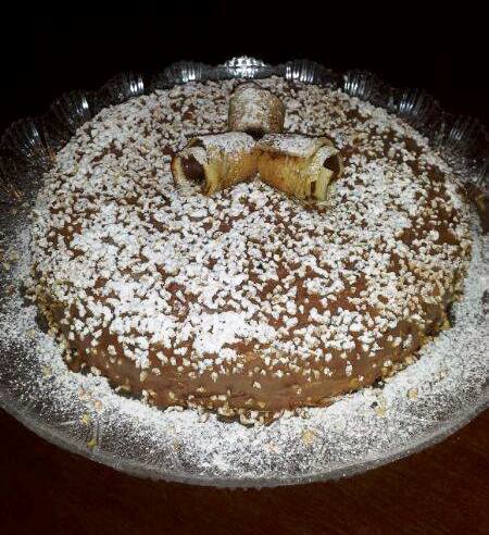 Montare i tuorli con lo zucchero, aggiungere il latte, il cioccolato fuso, la farina setacciata, la fecola, il lievito, gli albumi montati a neve ed un pizzico di sale.