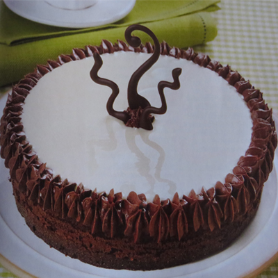 Inserire la crema al cioccolato fondente in una tasca da pasticceria e con un beccuccio a stella formare delle roselline lungo il bordo della torta e al centro.