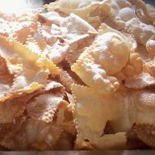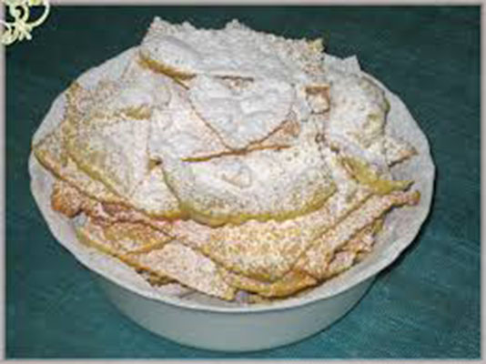 Quando le chiacchiere si saranno raffreddate. Cospargerle di zucchero a velo.