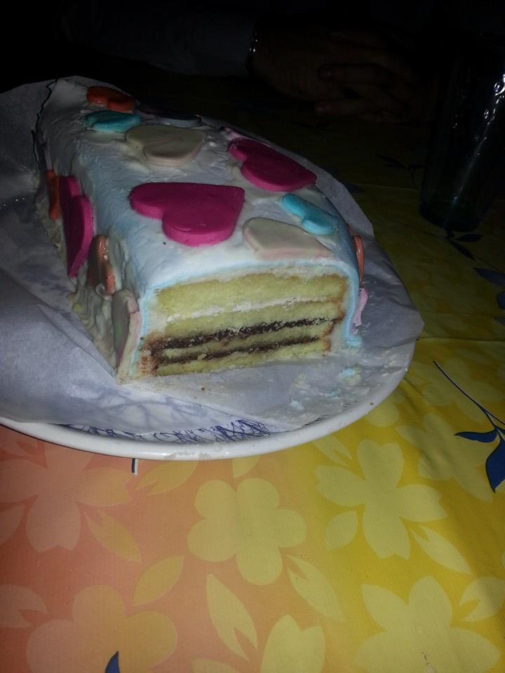 Tagliare delle formine in base all'occasione (cuori per sanvalentino) dalla pasta di zucchero colorata ed incollarli alla torta usando la crema di burro come collante.