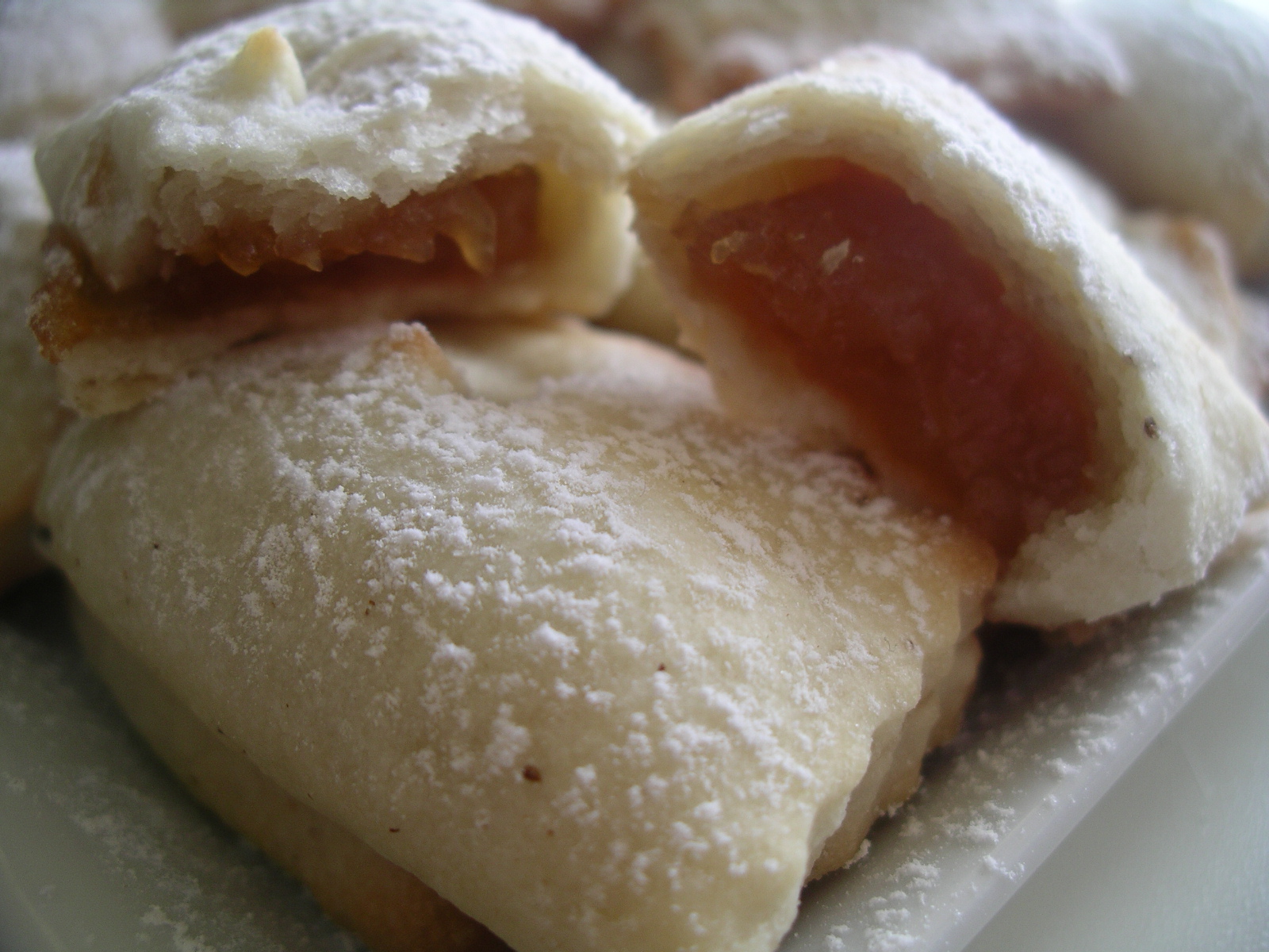 Mettete al centro di ogni rettangolo di pasta un pò di confettura.