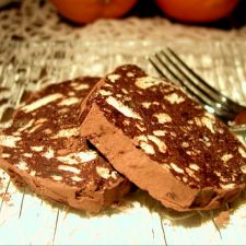 Sbattere le uova con lo zucchero, il cacao, il liquore, il burro e i biscotti.
