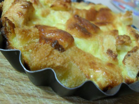 Tagliare la crosta del pan carrè e imburrarle fare dei tocchetti, unirle al composto e mescolare bene.