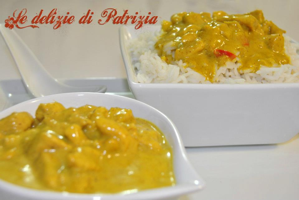 Iniziare tagliando le fette di pollo in piccoli pezzetti. In una padella capiente mettere a scaldare un po’ d’olio di mais sminuzzare lo scalogno e buttare dentro aggiungere una grattata di ginger fresco uno spicchio d’aglio anch’esso grattugiato il peperoncino tritato e privato dei semi e ancora due cucchiaini di curry uno di curcuma mezzo di coriandolo e mezzo di cumino. E’ importante che le spezie rosolino un po’ perché in questo modo sprigioneranno più sapore. Ora versare dentro la padella i pezzetti di pollo e farli rosolare e impregnare delle varie spezie. Quindi aggiungere il latte di cocco lo yogurt greco, un cucchiaino di zucchero muscovado e quanto basta di sale. Abbassare il fuoco al minimo coprire e far cuocere per 10-12 minuti al massimo senza far asciugare troppo. E’ importante che rimanga una buona dose di intingolo che servirà per condire il riso. Ora far lessare mezzo chilo di riso basmati sistemarlo in una ciotola e servirlo cospargendolo di pollo al curry.