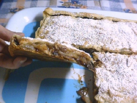 Sciogliere il burro in una padella e versarvi le pere facendo insaporire per bene. Aggiungere lo zucchero e far cuocere 10 min circa. Quando sono quasi cotte sfumare con un po’ di liquore e a cottura ultimata aggiungere i biscotti sbriciolati. Con un rotolo di sfoglia foderare uno stampo, stendervi uno strato sottile di nutella e adagiare sopra le pere. Richiudere con la seconda sfoglia e cuocere a 200° per 45 min.