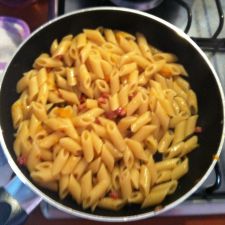Nel momento in cui la pasta sarà quasi al dente prelevare dalla pentola un mestolino di acqua di cottura e usarlo per ammorbidire il philadelphia che dovrà, poi, essere unito alle zucchine.
