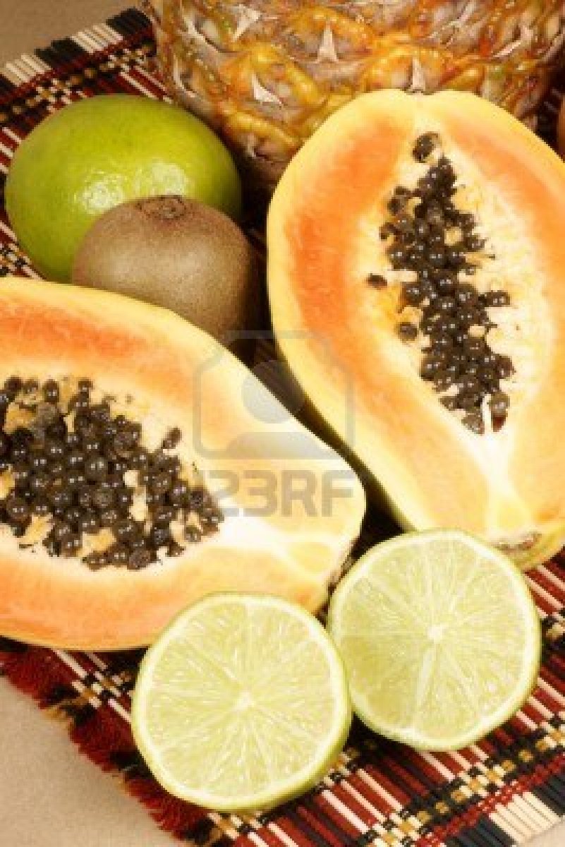Gli ingredienti devono essere freddi di frigorifero. Mondate l’ananas e la papaia e tagliateli a dadi. Raccoglieteli nel bicchiere del frullatore insieme con il miele, lo zucchero e il latte, coperchiate, quindi frullate sino a ottenere un composto cremoso.