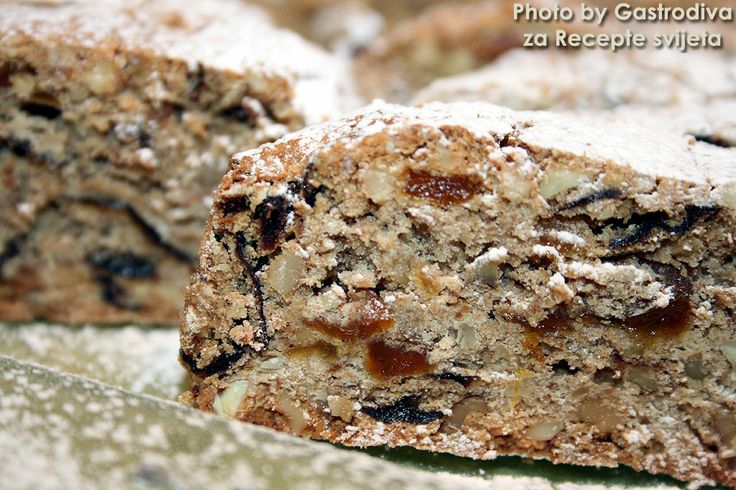 Sbattere le uova con lo zucchero fino ad ottenere un composto spumoso. In seguito aggiungere la frutta secca,un cucchiaio di cannella, 2 noci moscate grattugiate, scorza e succo di un limone, 2 cucchiai di rum, ed infine la farina.