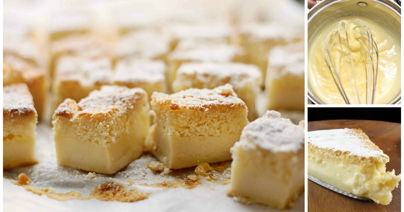 Si inforna un unico impasto e dopo la cottura, tagliando una fetta, ci si accorge che la torta presenta ben 3 strati, di diversa consistenza.