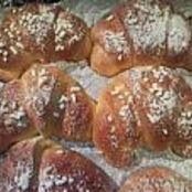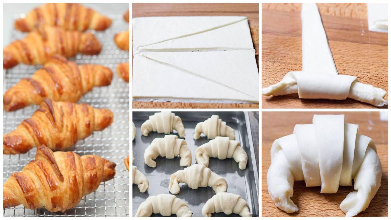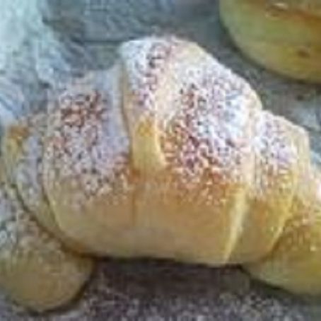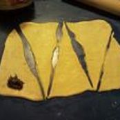 e inizio a tirare il mio impasto con il mattarello dandogli la forma di un rettangolo dello spesso di circa mezzo cm. dal quale ricaverò i triangoli che formeranno le mie brioche , li farcisco con ciò che mi piace, per es. nutella, marmellata, crema oppure vuota.