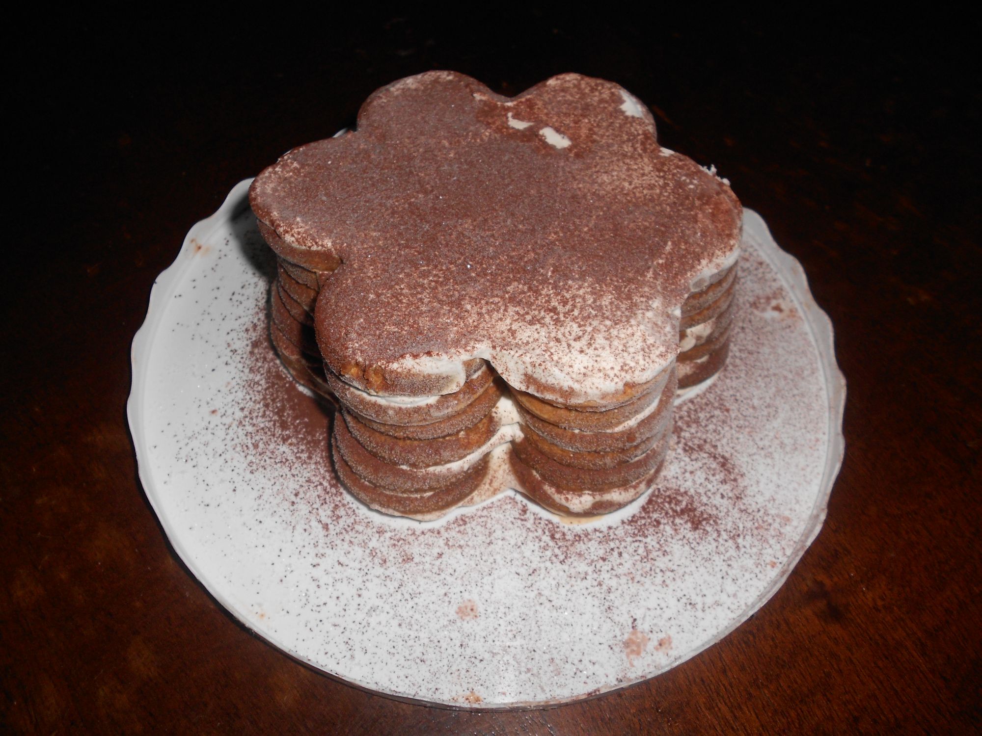 Bagnare i biscotti nel caffè e porli in un piatto da portata. Adagiarci sopra uno strato di panna e poi ancora uno di biscotti. Continuare cosi sino a terminare i biscotti.