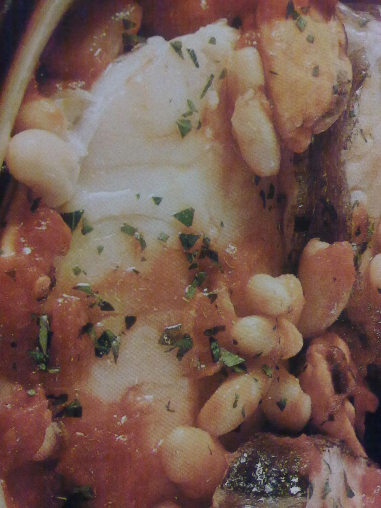 Togliere il pesce dalla salsa, versare nella casseruola i fagioli scolati dall'acqua farli insaporire per 5 minuti.