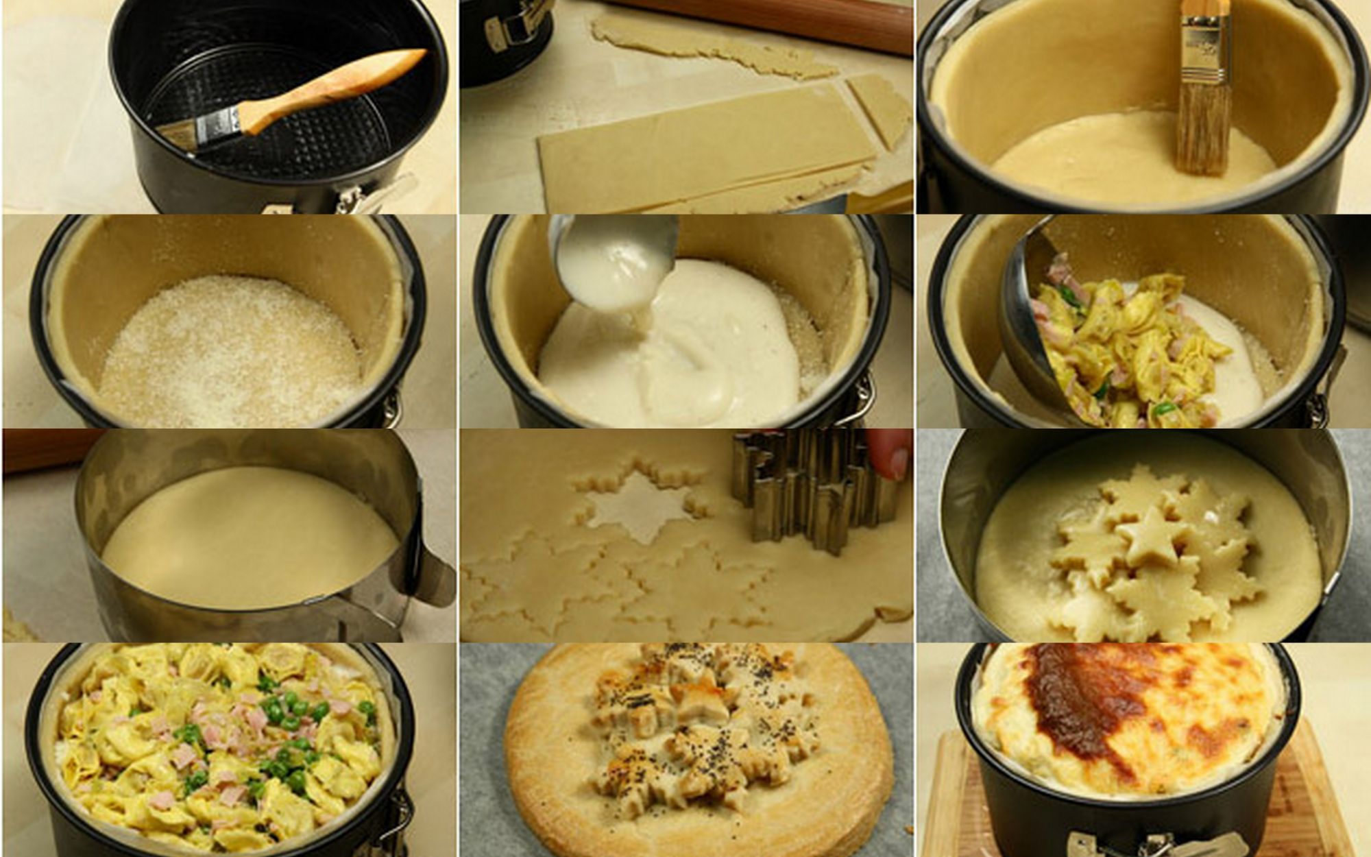 Spennellarlo con un uovo e dalla brisè avanzata ricavare delle formine con dei tagliabiscotti e disponerle sul disco che servirà da "coperchio" superiore.
