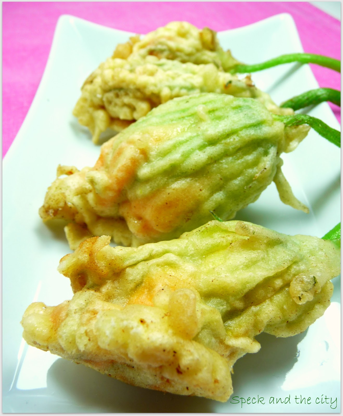 Quando l’olio avrà raggiunto la temperatura, riprendere la pastella dal frigorifero. Più fredda è la pastella, più sarà croccante la frittura. Immergete il primo fiore di zucca nella pastella. Giratelo per bene, aiutandovi con un cucchiaio e una forchetta, fino a che non sarà completamente ricoperto.