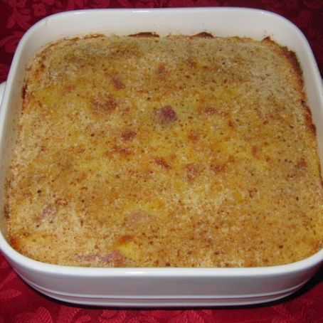 (Variante: distribuire il composto ben mescolato nella teglia e terminare con del pangrattato e una spolverata di pepe nero)