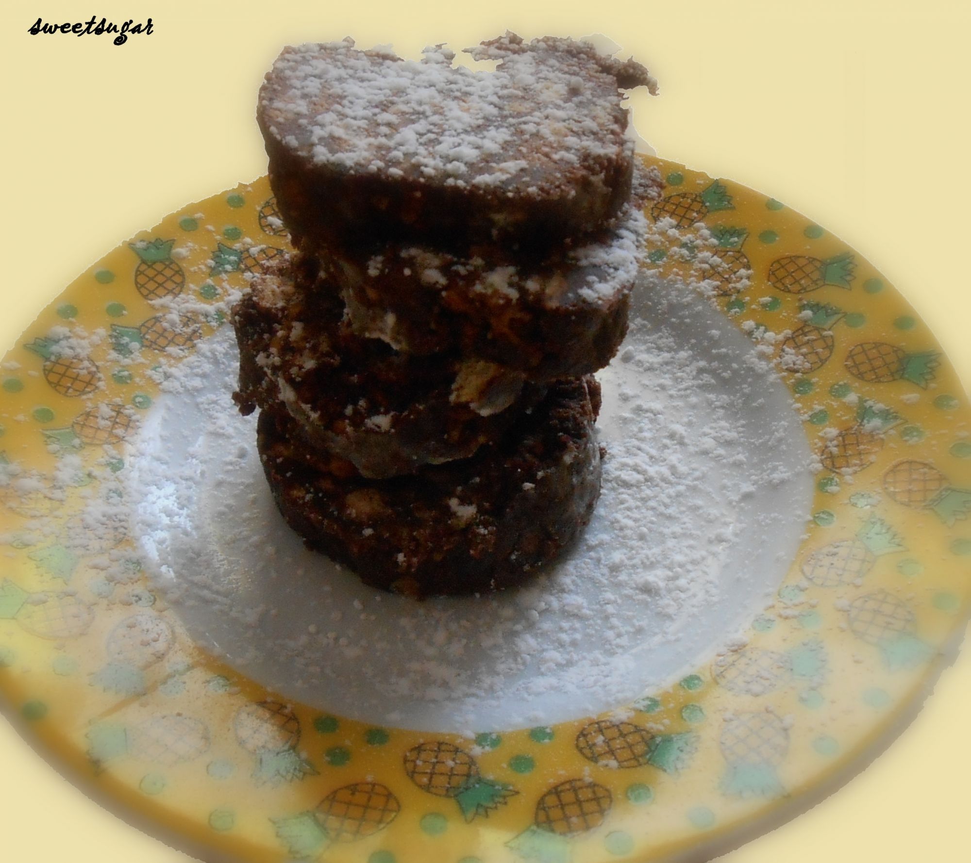 Il salame di cioccolato, un classico dolce dall'aspetto semplice e povero negli ingredienti viene qui proposto in una versione light senza uova, zucchero a velo o cioccolato fondente, ma altamente goduriosa!