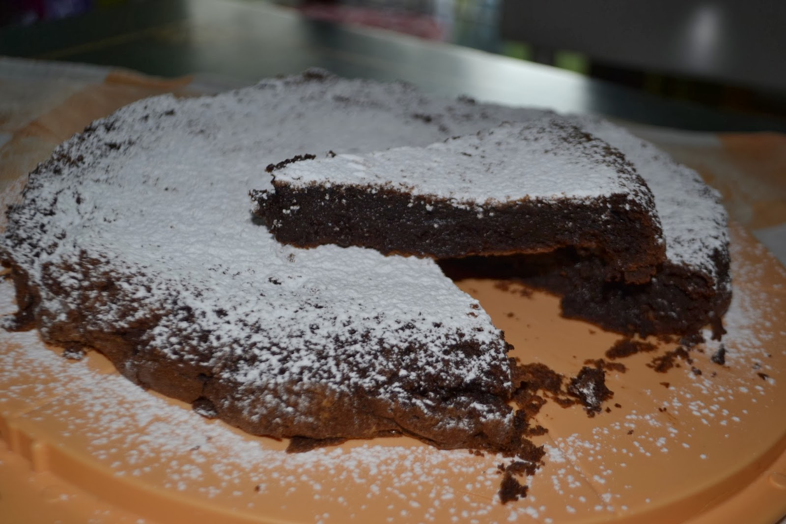 Separatamente montare le uova con lo zucchero, poi aggiungere la fecola e il preparato fatto in precedenza (burro, cioccolato fondente, cioccolato in polvere, rhum).
