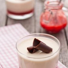 Mettere sul fuoco la panna con il latte, lo zucchero, e a parte mettere in ammollo i fogli di colla di pesce. Quando la panna comincia a bollire aggiungere la colla di pesce.