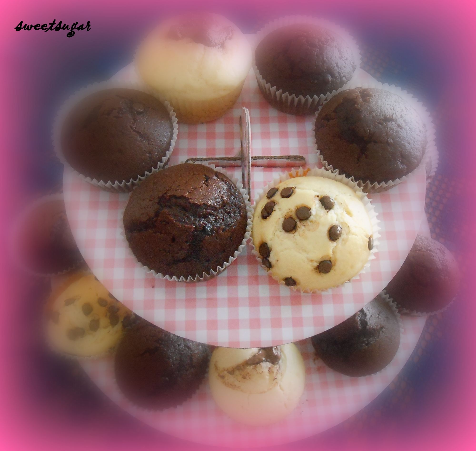 Preriscaldare il forno a 180° e rivestire la nostra teglia da muffin con dei pirottini di carta. Miscelare con una frusta a mano gli ingredienti secchi cioè la farina, lo zucchero, il lievito e il pizzichino di sale: in un'altra terrina mescolare sempre con una frusta le uova il latte e il burro fuso intiepidito. Versare gli ingredienti liquidi in quelli secchi amalgamando bene e versare, magari aiutandoci con un cucchiaio da gelato, l'impasto nei pirottini. Aggiungere sulla superficie di ogni muffin gocce di cioccolato a volontà( mi raccomando di passarle nella farina per non farle affondare nell'impasto durante la cottura) e cuocere per circa 15 minuti.
