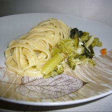 Tagliare 1 broccolo a cimette e farlo cuocere in acqua bollente. Quando è quasi cotto, ma ancora croccante, scolatelo e mettetelo a bagno in una ciotola con acqua fredda e dei cubetti di ghiaccio. Questa operazione serve a mantenere il colore verde brillante al broccolo. Far soffriggere l'aglio tritato in una padella con dell'olio caldo, unire la panna, mescolare bene, aggiungere la buccia di limone grattugiata, salate, pepate. Date una mescolata ed unite il succo di limone.