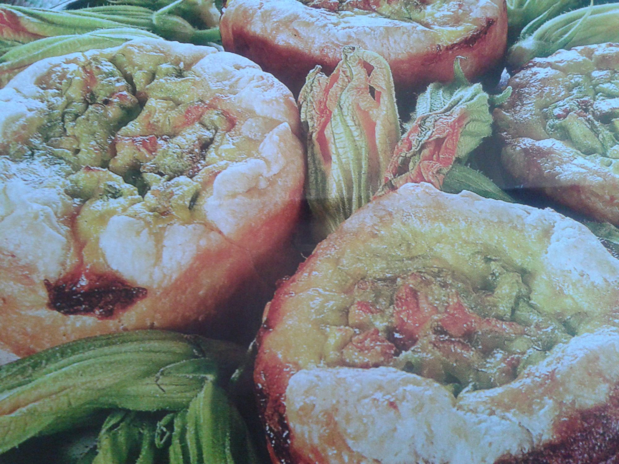 Foderate con la pasta sfoglia quattro tegamini, distribuite i fiori di zucca, ricopriteli con la pastella preparate e cuocete in forno per 15 minuti, quindi togliete la preparazione dal forno, lasciatela intiepidire, sformate e servite, decorando con i fiori di zucca rimasti.