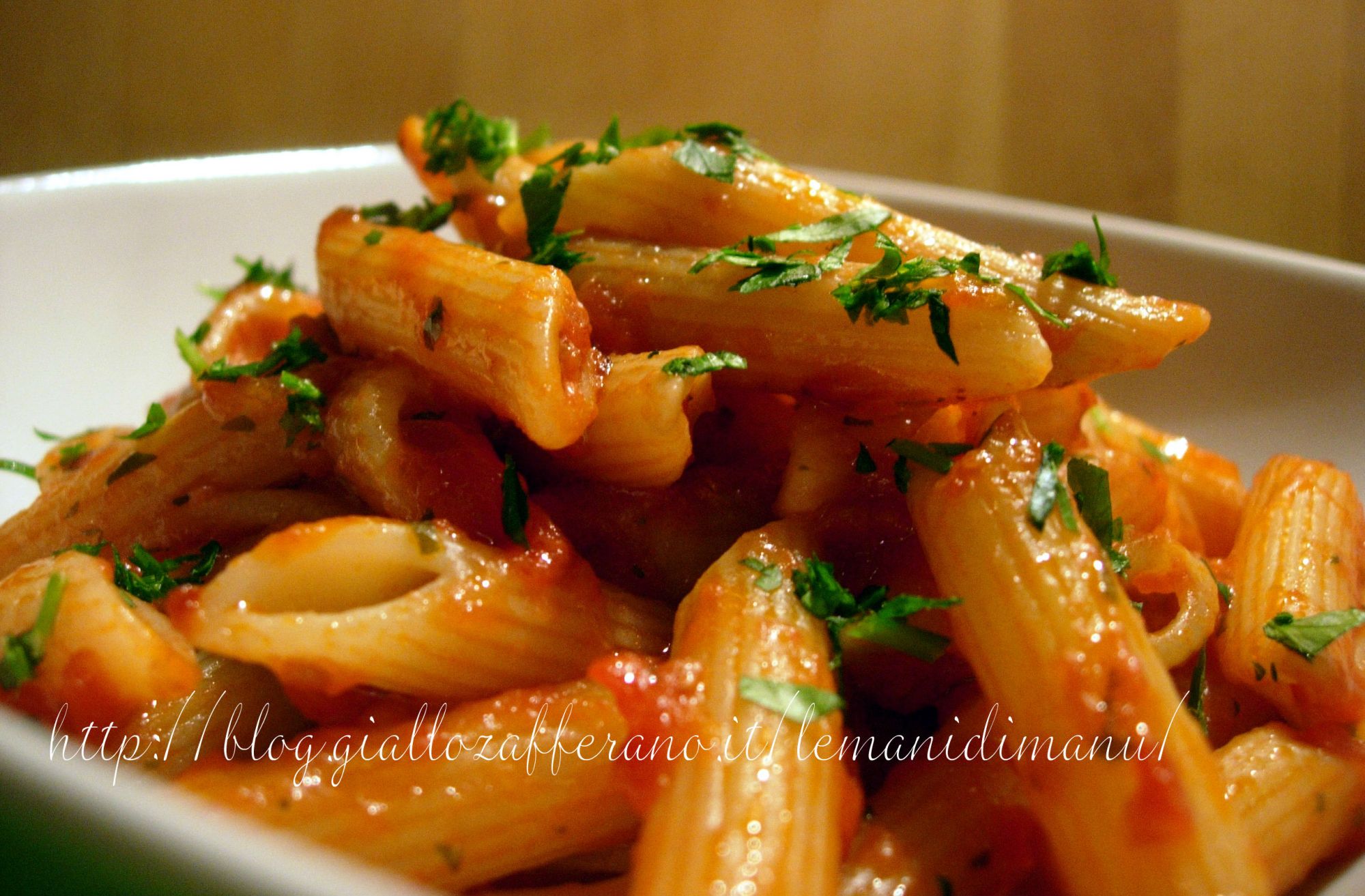 Fate soffriggere a fuoco alto nell'olio l’aglio con il peperoncino e quando sfrigola per bene unire la polpa. Lasciatela sul fuoco, ora medio, per una quindicina di minuti, e qualche secondo prima di spegnerlo unite il prezzemolo tritato. Una volta scolata la pasta ripassatela nel condimento, a fuoco alto, e servite.