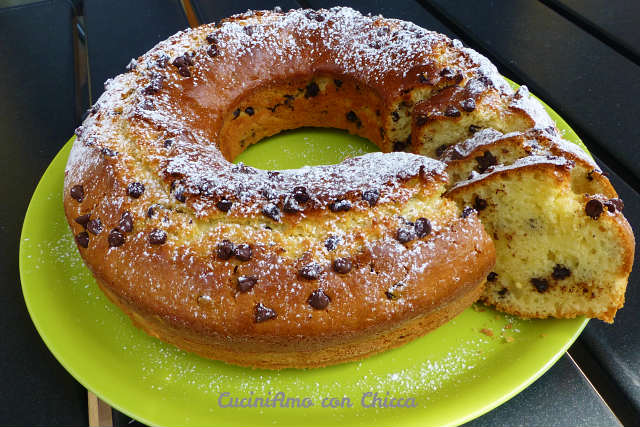 Iniziare sbattendo le uova con lo zucchero, poi unire la ricotta e l’olio, la farina e per ultimo unire il lievito e le gocce di cioccolata infarinate; Ora amalgamare bene il tutto. Quindi versate il composto in uno stampo a ciambella imburrato ed infarinato. Infornare la ciambella a 180 gradi per 35 minuti circa.