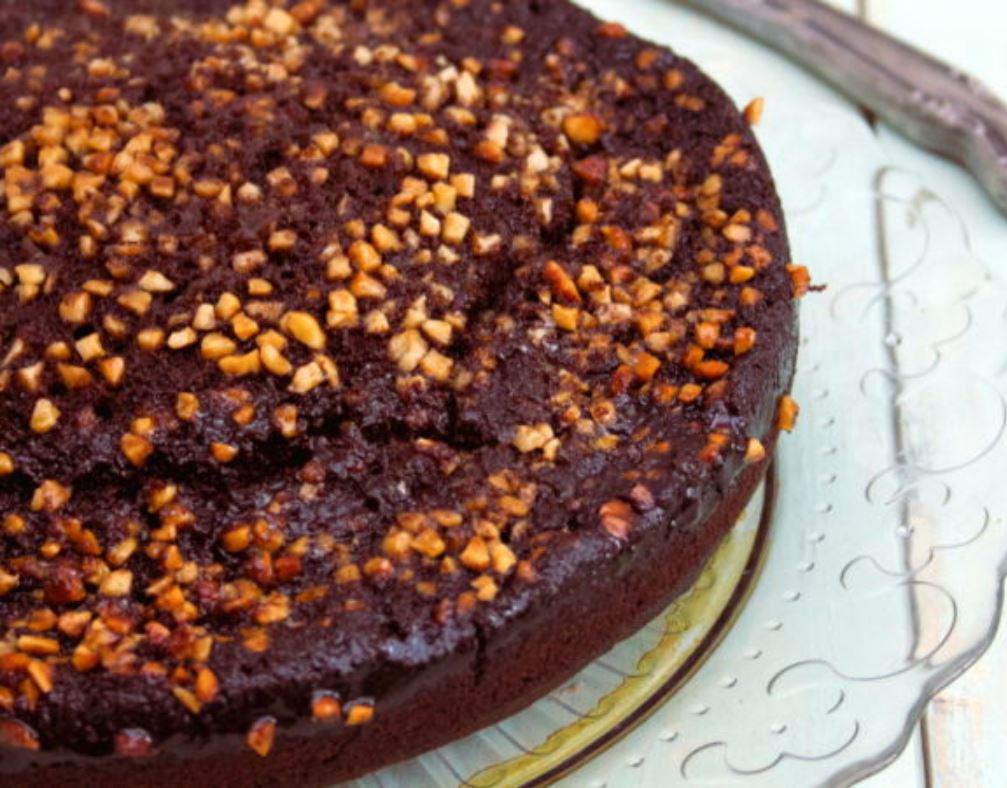 Versare il composto in una teglia rivestita di carta da forno, cospargere la superficie con la granula di mandorle e cuocere in forno a 180° per 25 minuti.