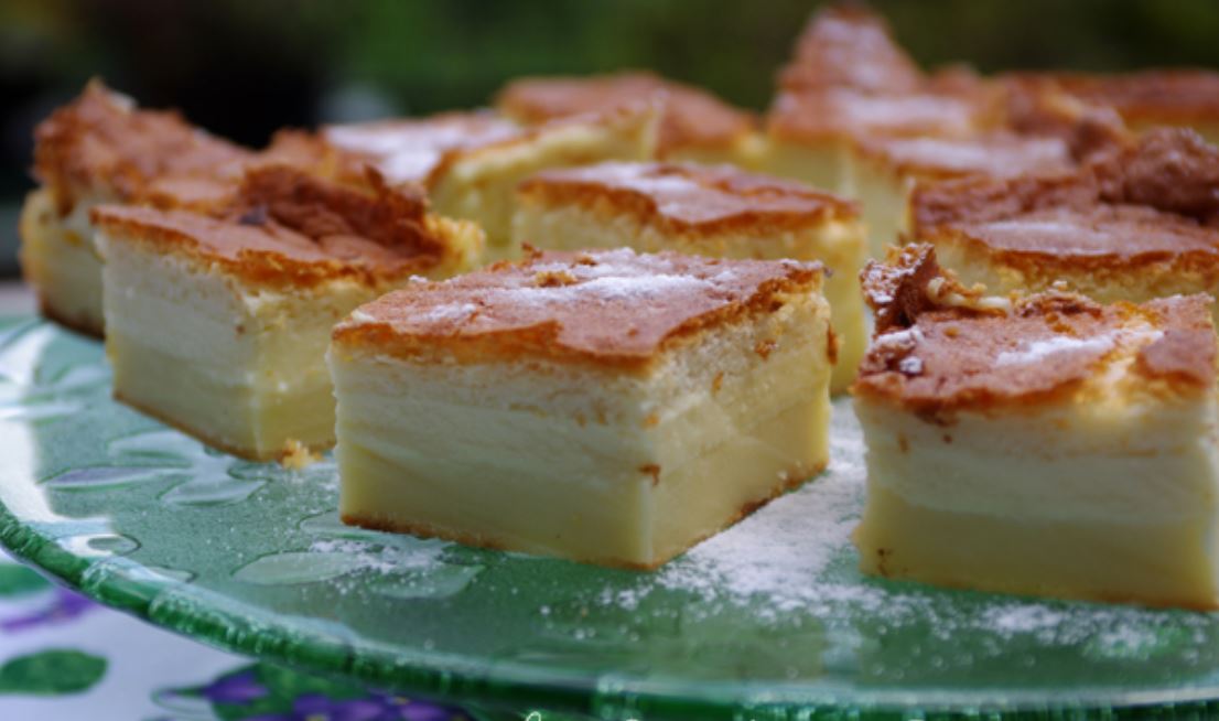 Quindi versate il composto nella teglia imburrata e foderata e infornate in forno preriscaldato a 150° per circa 80 minuti, finchè la superficie della torta magica non risulterà ben dorata.