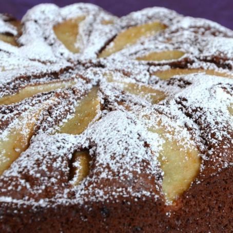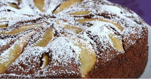Dividete l’impasto in due parti e versate la prima metà in una tortiera imburrata e infarinata, quindi coprite il tutto con le pere (serbandone alcune fette per la decorazione) e quindi coprite con il resto della preparazione. Decorate con le fette rimaste e infornate in forno preriscaldato a 180° per almeno 40 minuti.