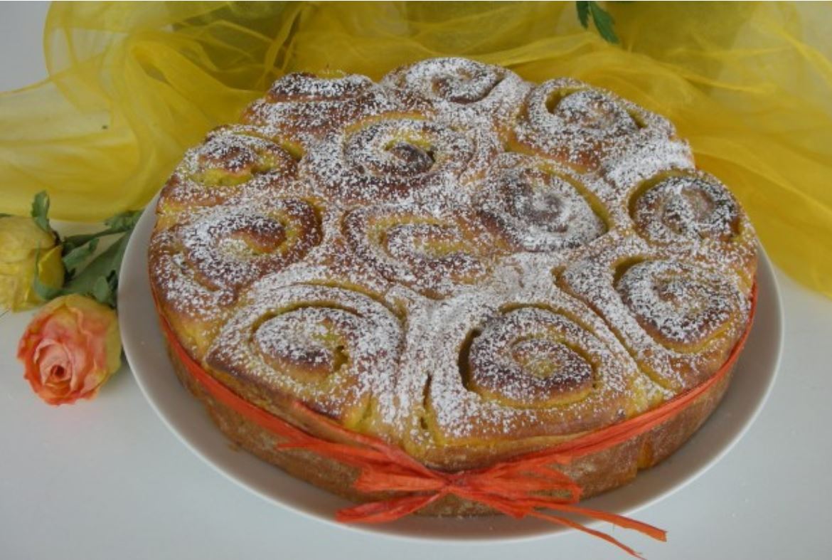 Con un mattarello stendere l'impasto ben lievitato in una sfoglia rettangolare (35x50 cm circa), spalmarvi la crema di burro e quindi arrotolare la sfoglia dal lato più lungo.