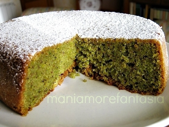 Frullare i pistacchi e mescolare alla farina; aggiungere lo zucchero e continuare a mescolare.Continuare mettendo i tuorli e il burro sciolto in precedenza. Montare gli albumi a neve e mescolare dal basso verso l'alto.Quando l'impasto è ben amalgamato aggiungere il lievito. Mettere in una tortiera e infornare per 45 minuti a180°.