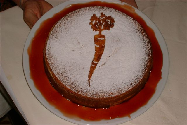 Tritare le carote e separare i tuorli dagli albumi. Montare gli albumi a neve e a parte i tuorli con lo zucchero e montare questi ultimi bene per almeno 15 minuti. Dopo ciò aggiungere gli albumi precedentemente montati e il lievito facendo cura di non smontare il tutto.