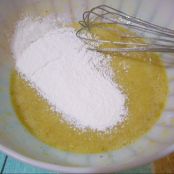 Aggiungere i 6 cucchiai di olio evo, un pizzico di sale e di pepe, il curry, unire la farina setacciata con il lievito