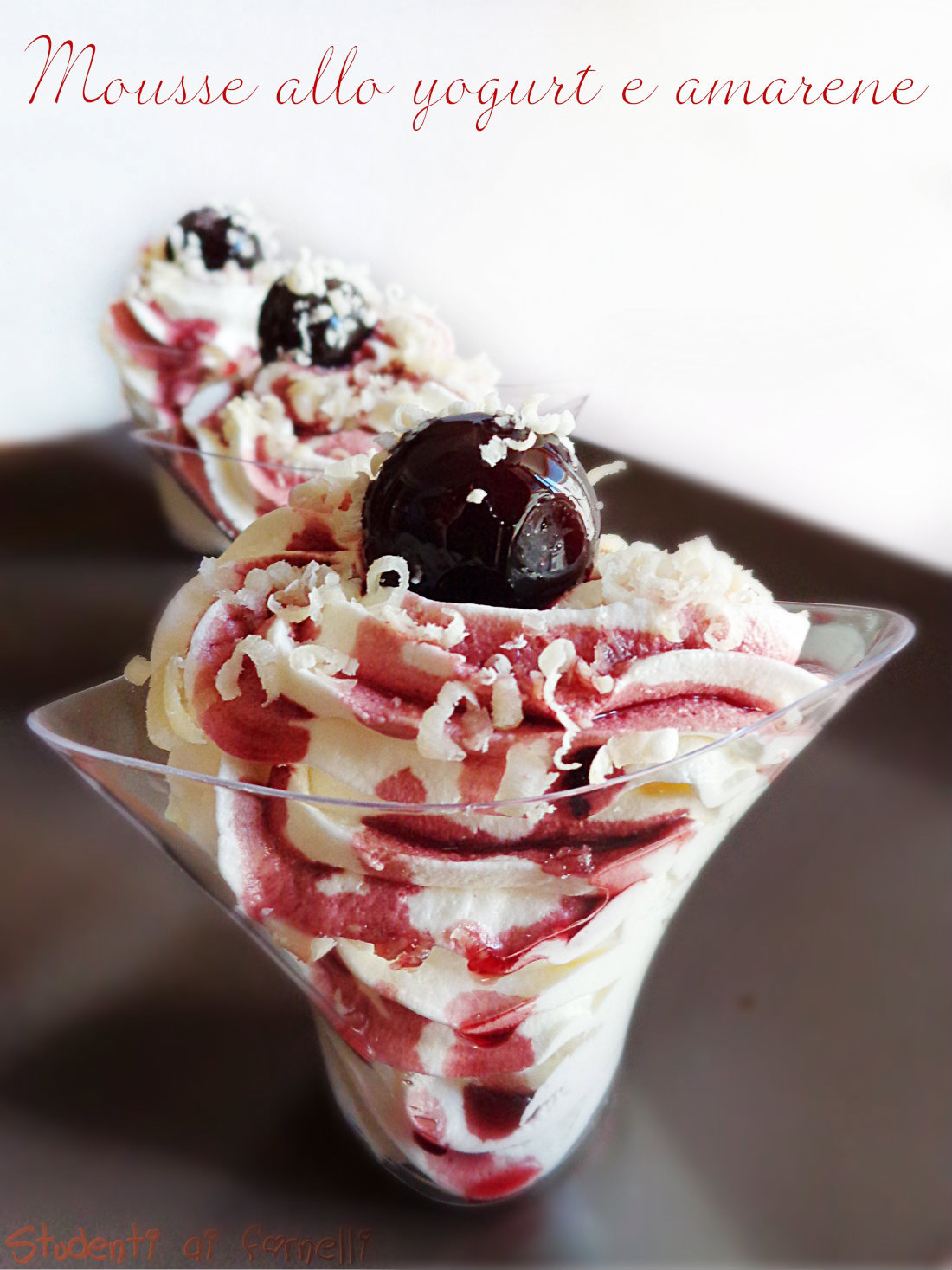 Per preparare la mousse allo yogurt e amarene vi consiglio di usare abbastanza fresche in quanto l’albume viene consumato a crudo. Montate l’albume a neve ben ferma (se necessario con un pizzico di sale). A parte montate la panna. Unite lo yogurt all’albume mescolando delicatamente con un cucchiaio di legno per evitare che si smonti, fino a che non si sarà incorporato tutto