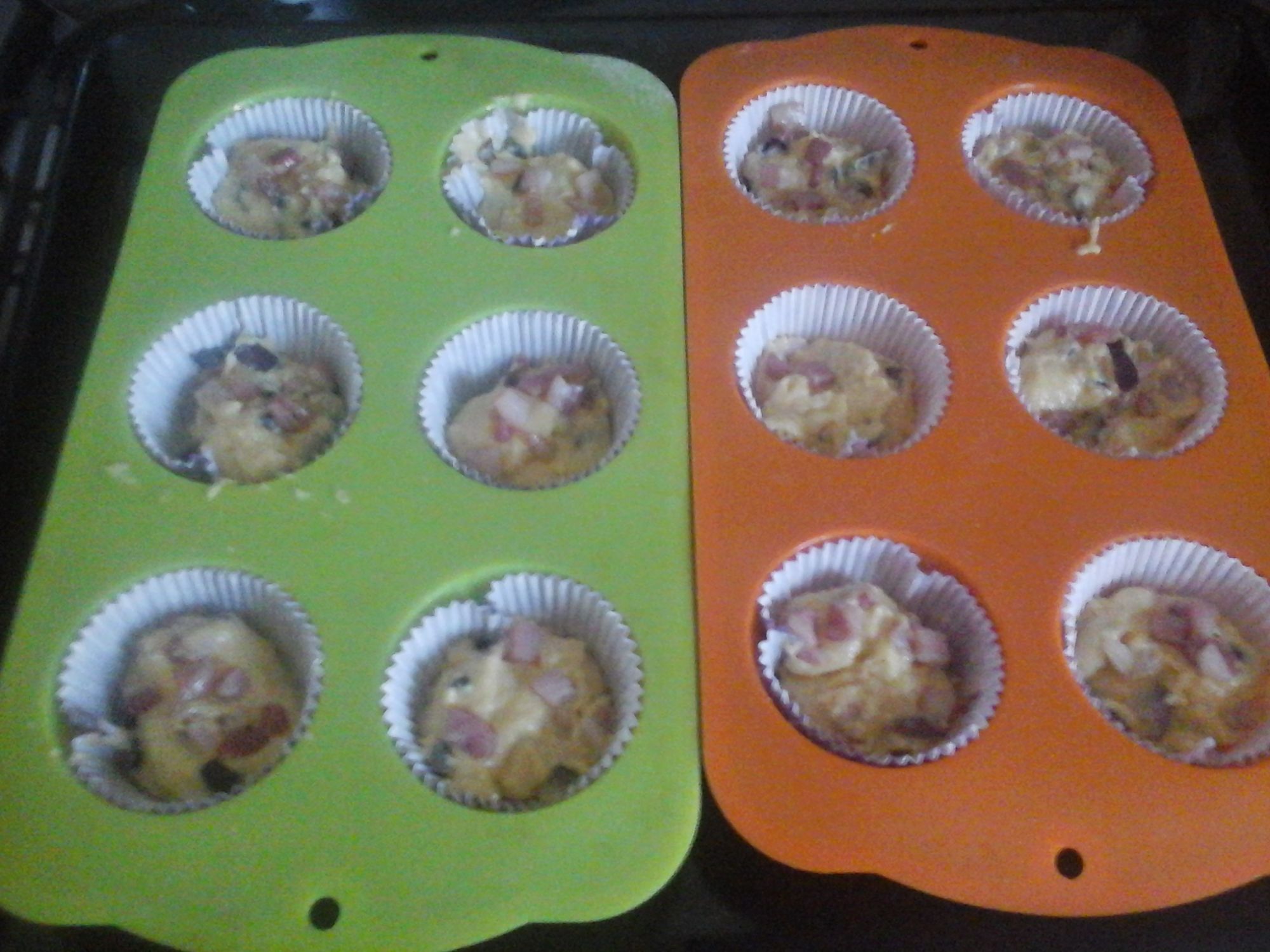 Aggiungere al composto la pancetta e cipolla, lasciando indietro qualche cubetto di pancetta per decorazione. Posizionare dei pirottini di carta negli stampi per muffin e riempirli col composto preparato. Guarnire con qualche cubetto di pancetta poi onfornare a 180° per 20-25 minuti