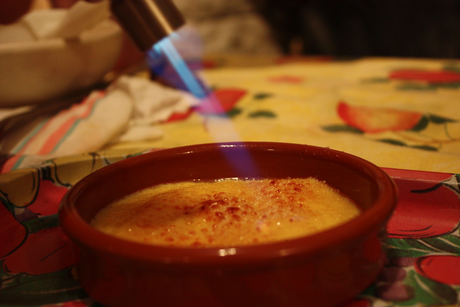 Mettete ora il composto ottenuto in un tegame e cuocete per 5 minuti mescolando di continuo. Versate la crema ottenuta in 4 stampini bassi da forno, lasciatela raffreddare e riponetela in frigo per almeno 4 ore. Al momento di servire in tavola, cospargete la crema catalana con lo zucchero di canna e una spolverata di noce moscata e mettete le pirofiline in forno sotto il grill caldo per pochi minuti, finchè lo zucchero in superficie non si sarà caramellato. Avrete così una crema catalana con la superficie croccante e il cuore morbido.