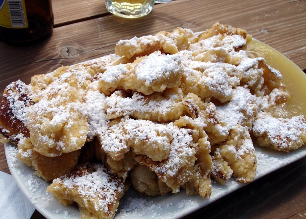 Fate dorare la parte inferiore a fuoco moderato e quando questa sarà pronta, tagliatela in quattro parti e giratela con una spatola per terminare la cottura anche dall'altra parte. Quando anche la seconda parte sarà cotta, tagliate il vostro kaiserschmarren il più parti con l'aiuto di una forchetta o una paletta. Preparate il kaiserschmarren in tre riprese, come sopra descritto, dividendo appunto in tre parti uguali l'impasto.