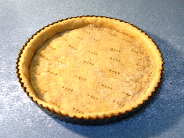 Impastare il tutto velocemente con le mani evitando che la pasta diventi tropo elastica.Formare una palla, avvolgerla con una pellicola e farla riposare in frigo per almeno mezzora.Dopo mezzora stendere la pasta aiutandosi con della carta forno sia sotto che sopra la pasta e stendere con il mattarello.Mettere la frolla in una teglia per crostata e punzecchiare con una forchetta.Ponete la frolla in forno già caldo per 25 minuti.Terminata la cottura, sfornate la crostata e guarnite con crema pasticcera o confettura .