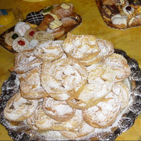 Friggere in olio di semi . Asciugare bene in carta assorbente e guarnire con zucchero a velo.
