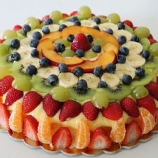 Aggiungere gli albumi, miscelare e versare metà composto in una teglia, coprire con la frutta e versare il restante impasto.